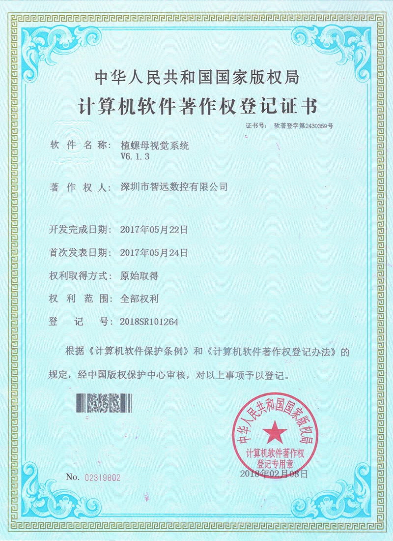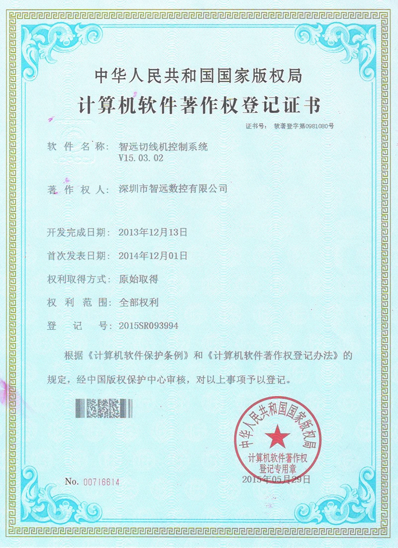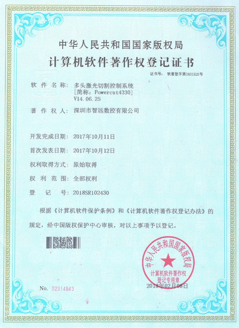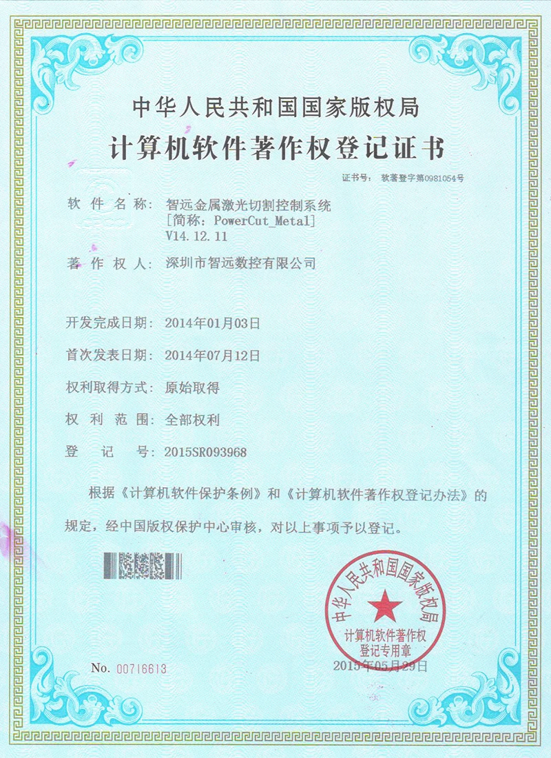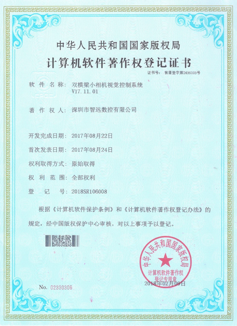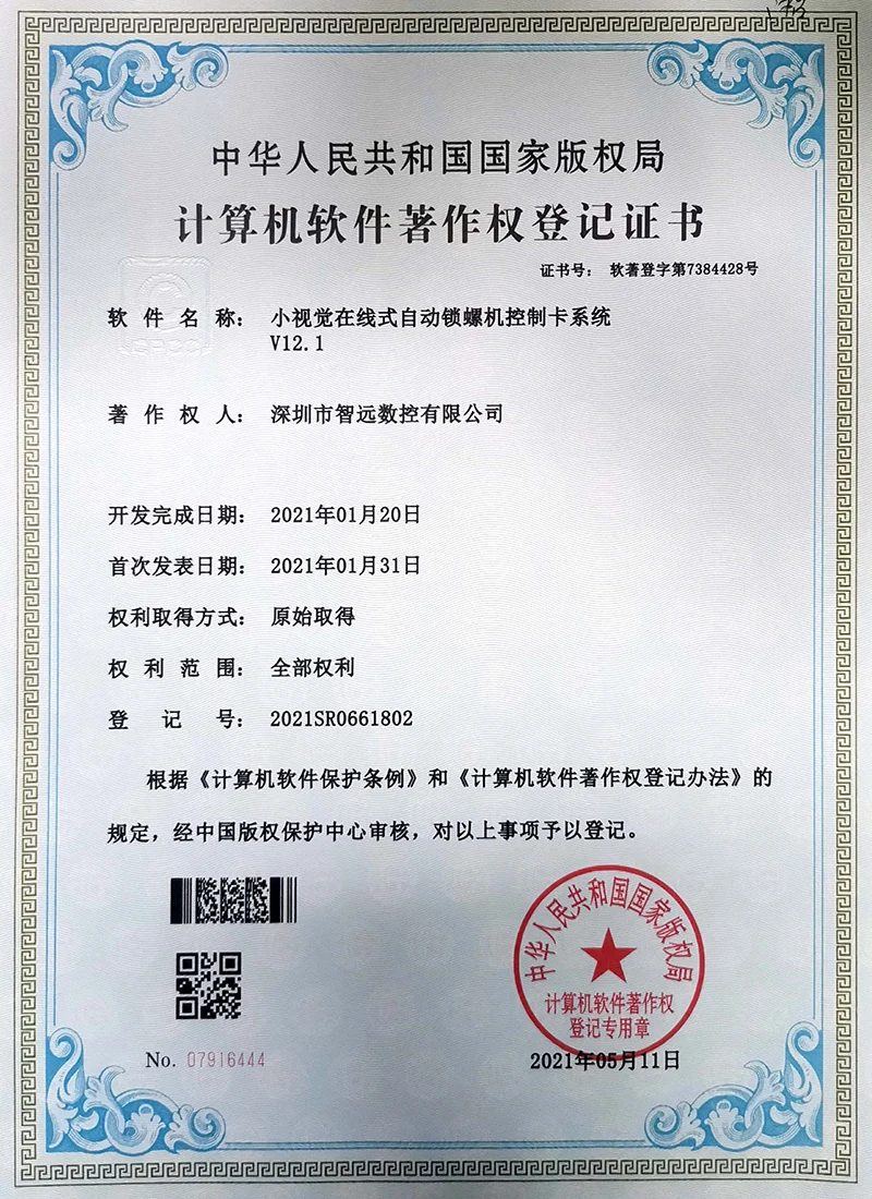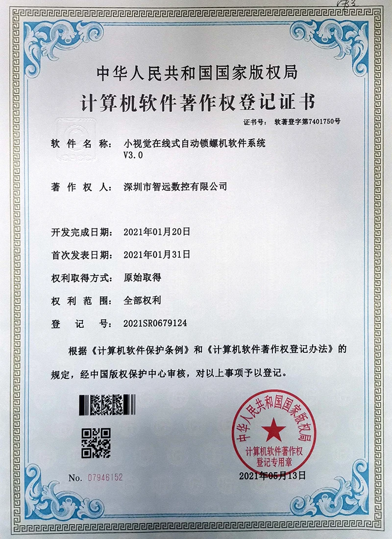 Projekce online laserového ovládacího systému; Mark Point Vision Online Laser Control Software; Galvanometr s dvojím letem offline řídicí systém; Systém řídicí karty vibrací V2; Systém ovládací karty pro malou vidění online automatické zamykání strojů v12; Systém strojů na okna; Software pro řezání laserového laseru Zhiyuan; Systém řízení vzájemného pohybu dvojitého paprsku; Shenzhen Zhiyuan CNC vizuální kontrolní software pro řezání laseru.