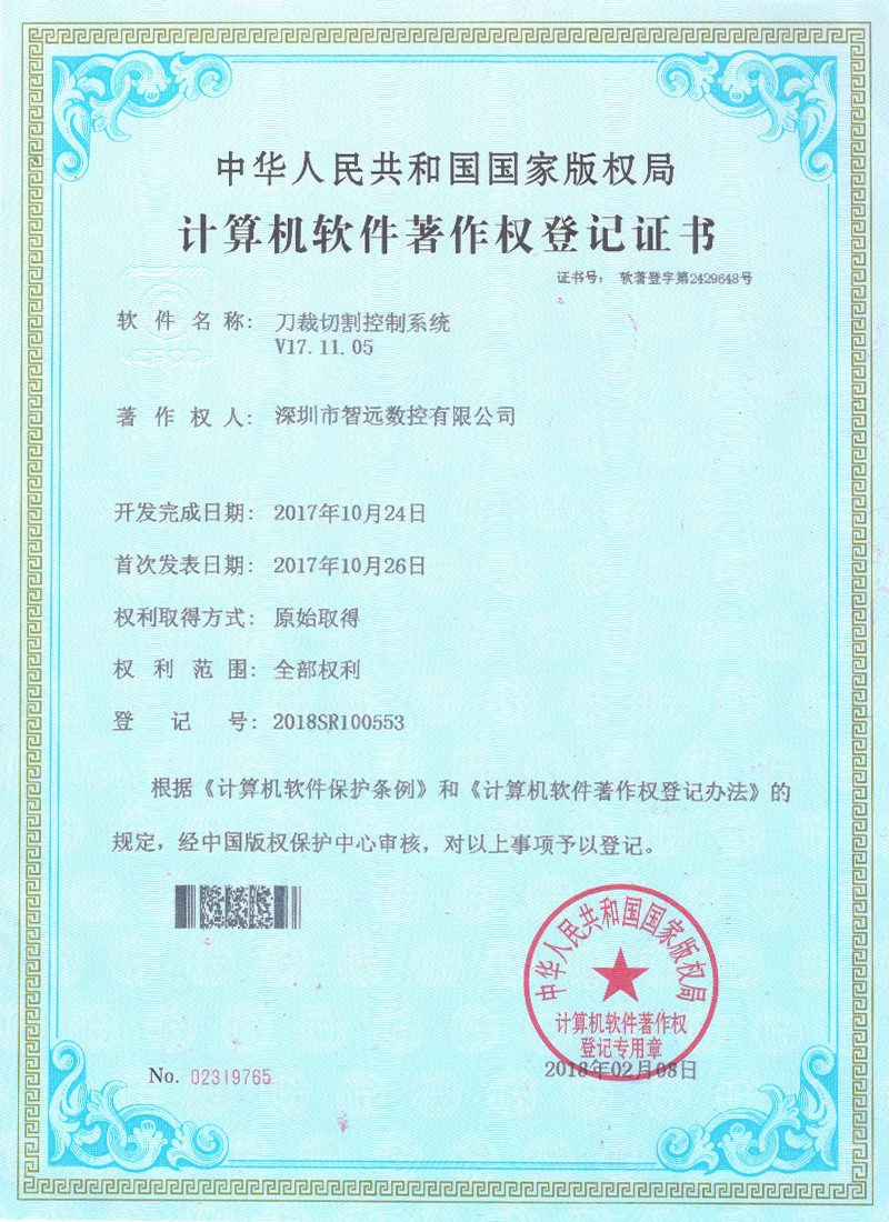 Galvanometr Small Vision Online Laser Control Software; Systém řízení řezání letu V1; Systém řezacích karet pro malé vidění CNC; Velký vizicí laserový systém CNC CNC; Software systému vibračního nože V2; Systém řízení řezání laseru s více hlavami; Internet of Things 4G Positioning System; Dvojitý paprsek malý systém ovládání vidění fotoaparátu; Systém řízení výsadby ořech; Software pro značení dynamického galvanometru;