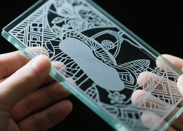 CO₂ laser je dobře absorbován povrchem skla a běžně se používá pro povrchové gravírování. Gravírovací efekt CO₂ laseru se projevuje jako matný bílý vzor, díky čemuž je vhodný pro reklamu, umělecké dekorace a dárkové nápisy. Ultrafialové (UV) lasery se naproti tomu vyznačují kratší vlnovou délkou a pracují v režimu „studeného zpracování“ s minimální zónou ovlivněnou teplem. UV lasery jsou schopny vytvářet jemné čáry, QR kódy a loga.