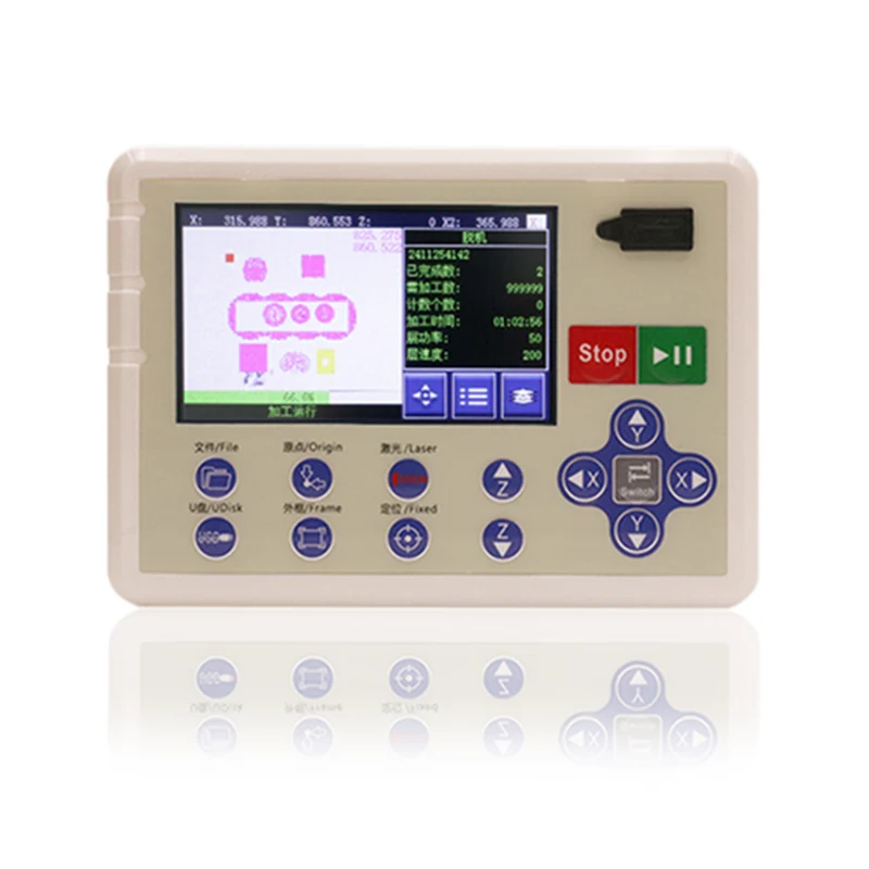 The Visual Positioning Laser Engraving Controller features a 4.3-inch touchscreen, supports multiple file formats, and enables high-precision graphic recognition and cutting.It supports simultaneous recognition of multiple templates, allowing processing of multiple graphics to improve production efficiency. The intelligent feeding function can automatically correct deviations to ensure cutting quality at splicing points. Meanwhile, the system also supports Z-axis feeding and power-off resume cutting functions to guarantee stability and continuity during the cutting process.